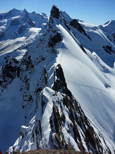 Comparer la beauté du Castor à celle de Pollux, prélude à l’ardeur de la putanesca ou la fraîcheur d’all’aglio olio e peperoncino ; s’élever loin au-dessus de la terre lors de la longue, belle et vertigineuse traversée du Lyskam, puis s’en revenir dévorer les spaghetti all ragù ; prendre une charge de papardelle ai funghi porcini avant de s’engager, courageusement, dans la longue après-midi de retour entre le refuge Quintino Sella et celui des guides du Val d’Ayas.